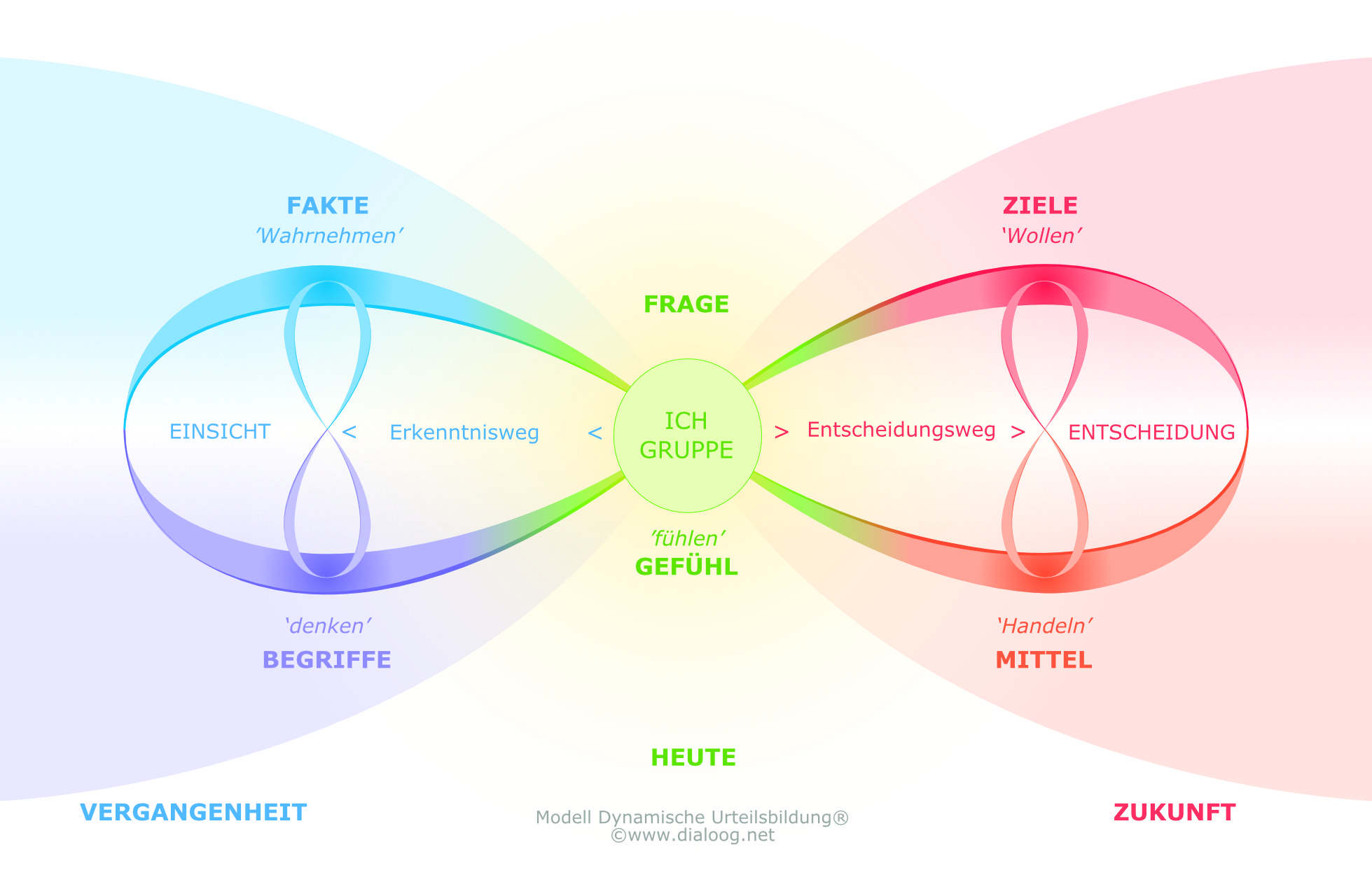FRAGE/PROBLEM (Gefühl): Am Anfang eines Beurteilungsprozesses steht immer eine Frage oder ein Problem des Einzelnen oder der Gruppe. Die Emotion, die eine Frage hervorruft, wird im Gefühlsleben des Menschen verortet. Hinter einer Frage verbirgt sich ein gefühltes Missverständnis mit dem Bedürfnis zur Klärung.
